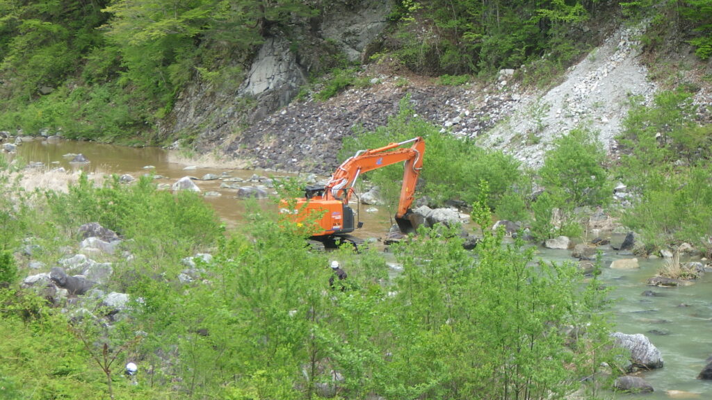 令和8年4月27日(月)~ 5月1日(金)白川村牧地区、庄川本流において、河床の掘削工事(河床耕耘)を行います。白川村牧地区内(御母衣ダム堰堤より下流約1km)及び白川村長瀬、平瀬地区の庄川本流は、当面の間濁りが強く出ることが予想されます。